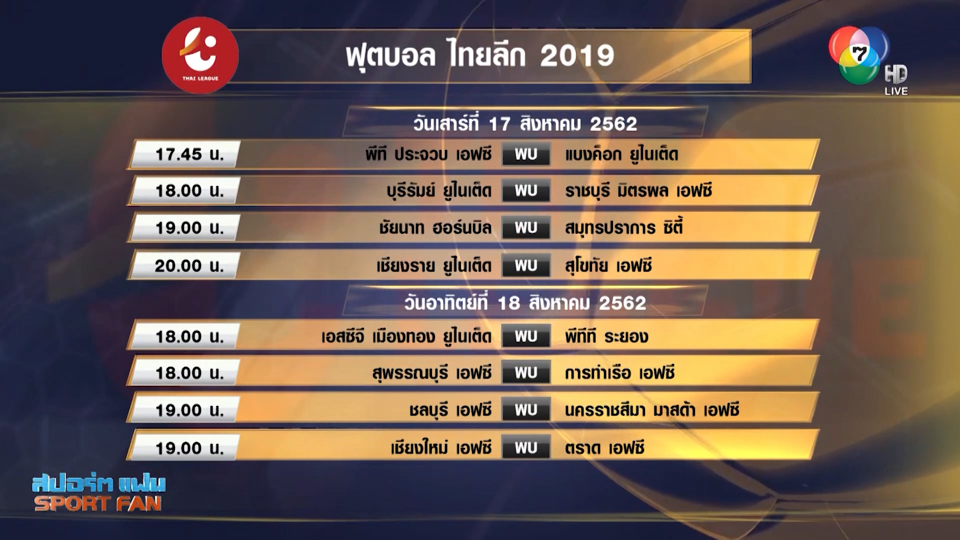 ตารางการแข งข นไทยล ก2019 ส ปดาห ท 8 ว นอท 19 21 เมษายน 2562 ข าวบอลไทยล ก